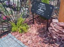 Далее после некоторых пропущенных процедур, можно видеть готовую работу. Мы сделали голгофу под крестом, установили таблички, уложили пол, посадили можжевельники и туи, закрыли пол корой.