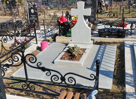 Очередной несложный заказ подразумевал проведение на могиле комплексной уборки. На исходных фотографиях видно, что место захоронения изначально было относительно чистым: откровенной грязи на памятнике не было, надгробие лишь слегка покрылось пылью. Впрочем, желание заказчицы для нас закон, а потому на следующий день после контрольного звонка мы отправились на кладбище, где застали участок в следующем состоянии.